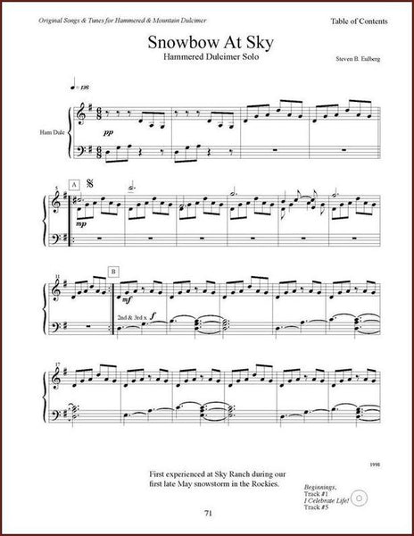 Each arrangement is usable for both mountain dulcimer and hammered dulcimer. We've included MP3 tracks of Steve's performances of each of these pieces.