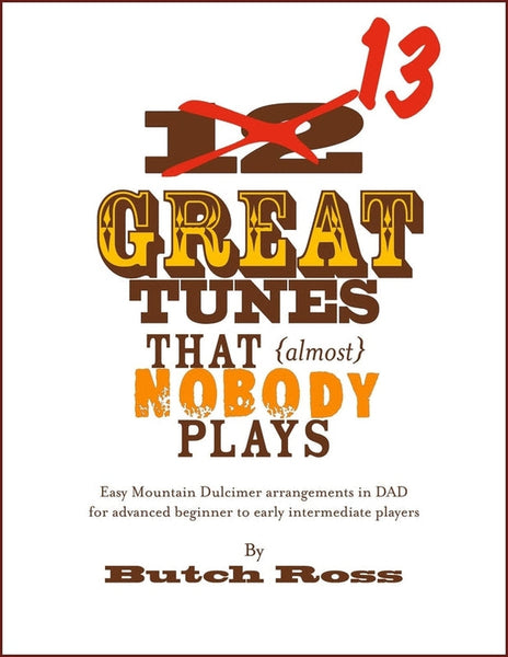 If you're tired of playing the same old songs in the same old way, then you've just found the book you need for your dulcimer collection. "13 Great Tunes That (Almost) Nobody Plays" will open your eyes (and ears) to some really great melodies and fun tunes that aren't the standard cookie cutter songs you're used to playing. No, sir! Combine Butch Ross's knack for pushing the edges and the freshness of some new tunes (and even some old tunes done in a new way), and your friends will be amazed at your playing abilities and will be asking you to play more.